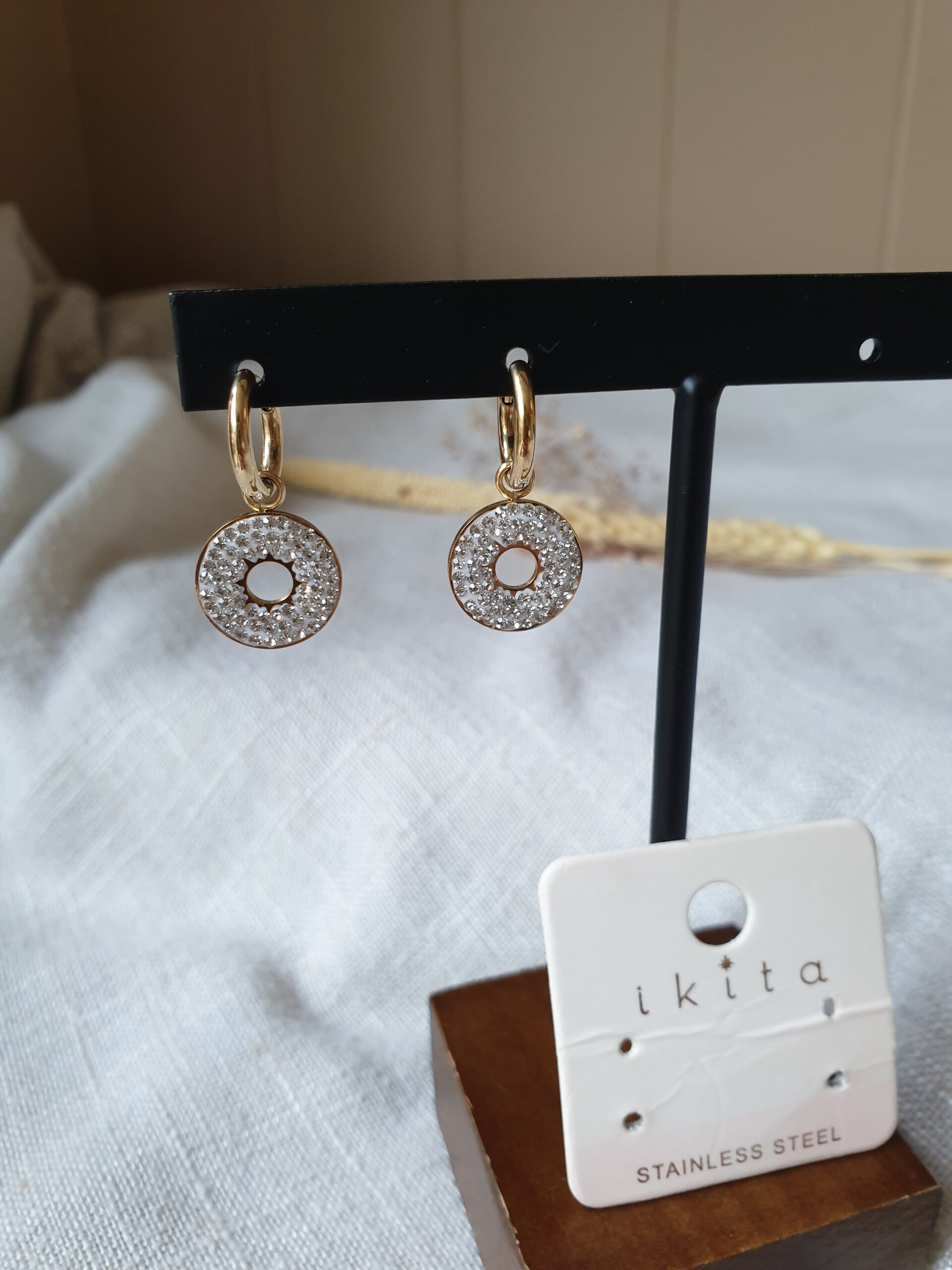 Goudkleurig,strass Stainless steel.