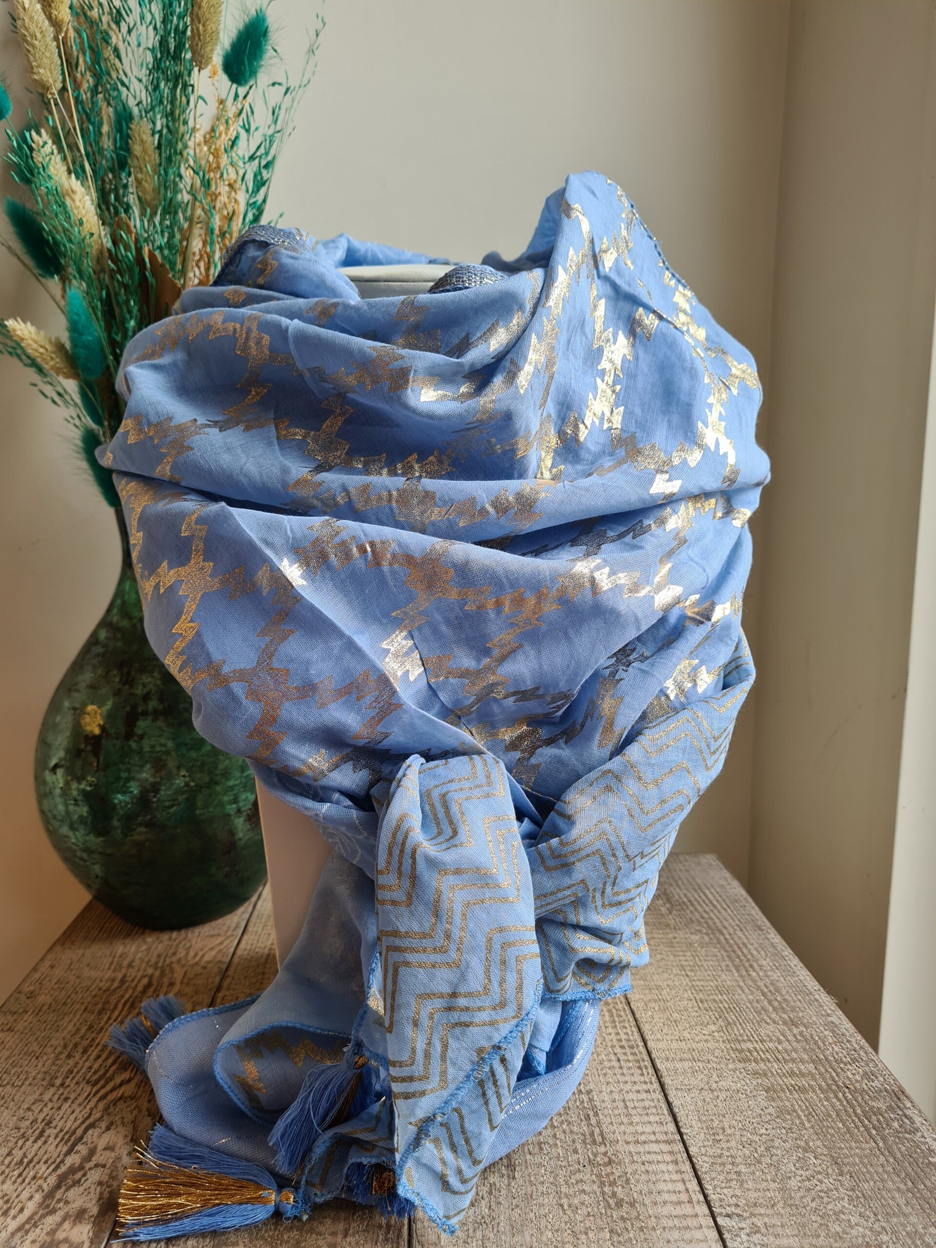 Vierkante sjaal met 4 verschillende kleurvlakken.