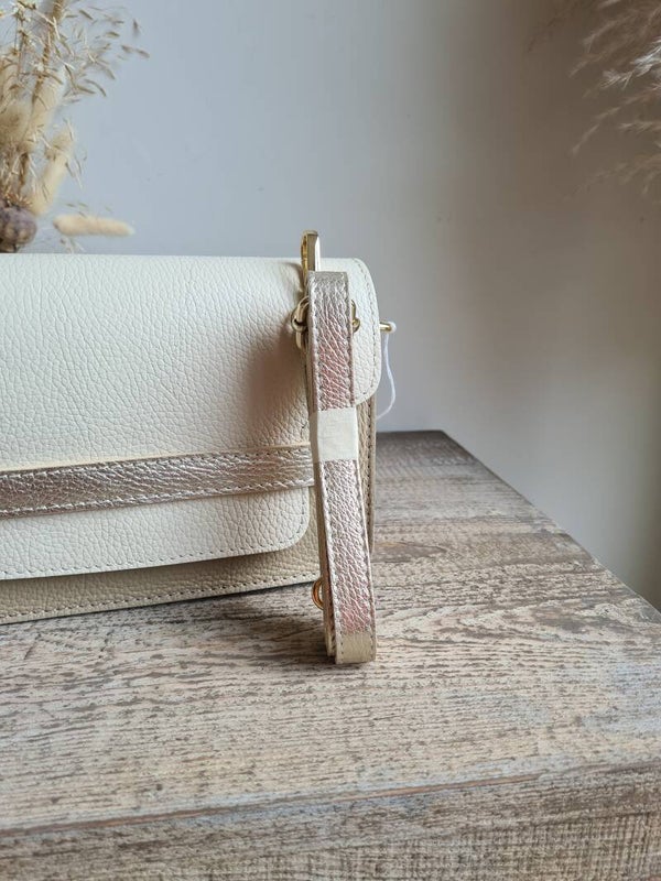 Lederen tas in 2 tinten beige en metallic goud detail.