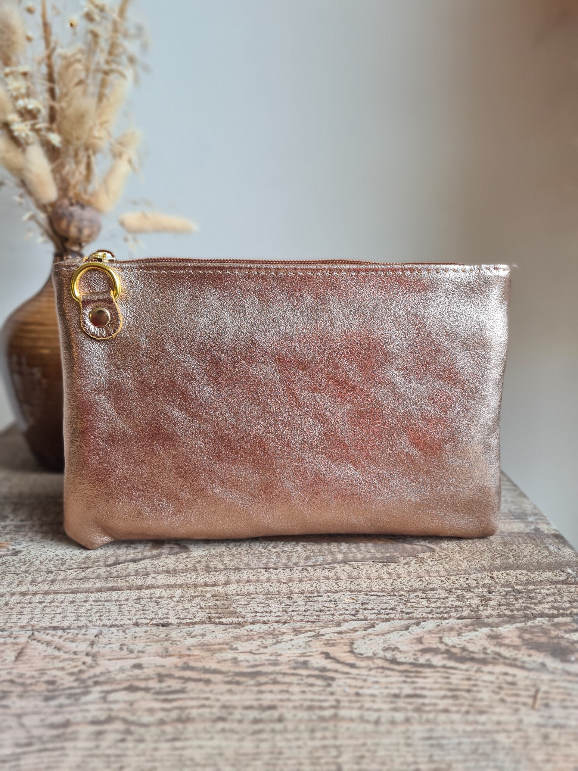 Lederen tasje in metallic kleuren.